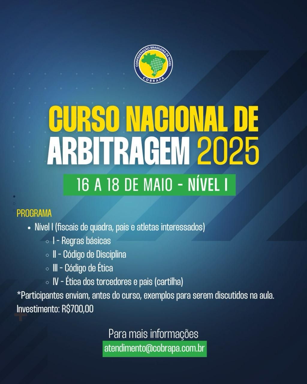 Vem aí o Curso Nacional de Arbitragem - Nível I 📋